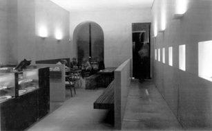 Die Firma Illy Caffè ist als weltweit agierendes Unternehmen, das Kaffee höchster Qualität röstet und vertreibt, bekannt. Als Teil der offensiven Strategie von Illy, die z.B. mit dem Kauf der Traditions-Pasticceria ‘La Bonboniera’ auch in andere Produktbereiche drängt, sollen international eine Reihe von Flagship Stores errichtet werden. Im Herbst 2000 wurde im Zentrum Triests ein Vorreiter eröffnet, der von Arch. Claudio Silvestrin gestaltet ist. Zur Straße hin gibt sich der Flagship Store verschlossen: die einzige, sehr große Fensteröffnung ist in Milchglas ausgeführt, nur ein ca. 10 cm schmaler Streifen bleibt durchsichtig - eine einzelne Espressotasse wird in diesem Schlitz präsentiert. Von der schmalen Straßenfront erstreckt sich das Lokal tief ins Gebäude-Innere. Die Zonierung in einen Sitzbereich, der Bar, einem Wandpult und dem Zugang zu den Sanitärräumen wird sowohl durch Mauervorsprünge - Artikulationen der alten Bausubstanz - als auch durch Niveauunterschiede erreicht. Abgesehen von in dunklem Holz gefertigtem Mobiliar ist die gesamte Lokaloberfäche monomaterisch in Scagliola ausgeführt. Silvestrin knüpft hier an seine Erfahrung im Bereich von Commercial Interiors (z.B. für Armani und Calvin Klein) und Gastronomie (z.B. Restaurant Johan in Graz) an. Claudio Silvestrin betreibt